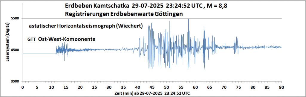 Am 29. Juli 2025 um 23:24:52 UTC (= 30.07.2025 01:24:52 MESZ) ereignete sich vor der Ostküste der russischen Halbinsel Kamtschatka ein schweres Erdbeben der Stärke 8,8 in etwa 20 km Tiefe.